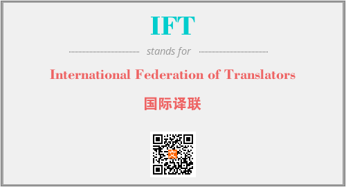 英文缩略词“IFT”经常作为“International Federation of Translators”的英文缩写来使用,中文表示:“国际译联”。本文将详细介绍英文缩写词IFT所代表英文单词,其对应的中文拼音、详细解释以及在英语中的流行度。此外,还有关于缩略词IFT的分类、应用领域及相关应用示例等。