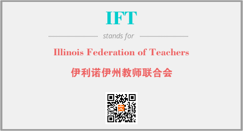 上述内容是“Illinois Federation of Teachers”作为“IFT”的缩写,解释为“伊利诺伊州教师联合会”时的信息,以及英文缩略词IFT所代表的英文单词,其对应的中文拼音、详细解释以及在英文中的流行度和相关分类、应用领域及应用示例等。