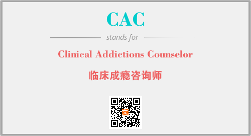 英文缩略词“CAC”经常作为“Clinical Addictions Counselor”的英文缩写来使用,中文表示:“临床成瘾咨询师”。本文将详细介绍英文缩写词CAC所代表英文单词,其对应的中文拼音、详细解释以及在英语中的流行度。此外,还有关于缩略词CAC的分类、应用领域及相关应用示例等。