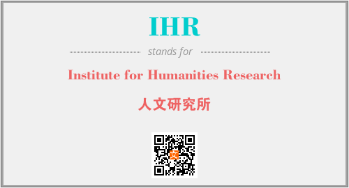 上述内容是“Institute for Humanities Research”作为“IHR”的缩写,解释为“人文研究所”时的信息,以及英文缩略词IHR所代表的英文单词,其对应的中文拼音、详细解释以及在英文中的流行度和相关分类、应用领域及应用示例等。