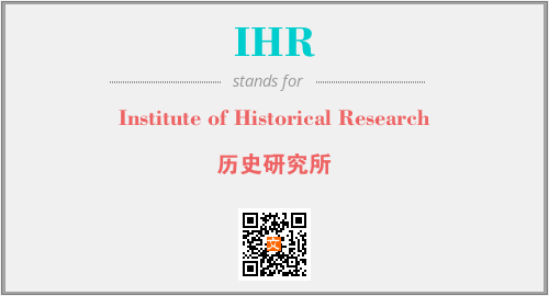 英文缩略词“IHR”经常作为“Institute of Historical Research”的英文缩写来使用,中文表示:“历史研究所”。本文将详细介绍英文缩写词IHR所代表英文单词,其对应的中文拼音、详细解释以及在英语中的流行度。此外,还有关于缩略词IHR的分类、应用领域及相关应用示例等。