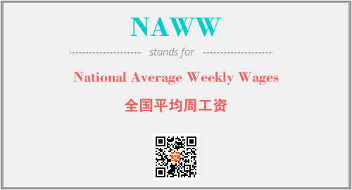 上述内容是“National Average Weekly Wages”作为“NAWW”的缩写,解释为“全国平均周工资”时的信息,以及英文缩略词NAWW所代表的英文单词,其对应的中文拼音、详细解释以及在英文中的流行度和相关分类、应用领域及应用示例等。