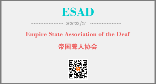 英文缩略词“ESAD”经常作为“Empire State Association of the Deaf”的英文缩写来使用,中文表示:“帝国聋人协会”。本文将详细介绍英文缩写词ESAD所代表英文单词,其对应的中文拼音、详细解释以及在英语中的流行度。此外,还有关于缩略词ESAD的分类、应用领域及相关应用示例等。