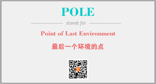上述内容是“Point of Last Environment”作为“POLE”的缩写,解释为“最后一个环境的点”时的信息,以及英文缩略词POLE所代表的英文单词,其对应的中文拼音、详细解释以及在英文中的流行度和相关分类、应用领域及应用示例等。