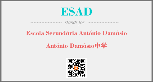 英文缩略词“ESAD”经常作为“Escola Secundária António Damásio”的英文缩写来使用,中文表示:“António Damásio中学”。本文将详细介绍英文缩写词ESAD所代表英文单词,其对应的中文拼音、详细解释以及在英语中的流行度。此外,还有关于缩略词ESAD的分类、应用领域及相关应用示例等。