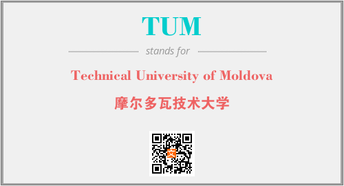 上述内容是“Technical University of Moldova”作为“TUM”的缩写,解释为“摩尔多瓦技术大学”时的信息,以及英文缩略词TUM所代表的英文单词,其对应的中文拼音、详细解释以及在英文中的流行度和相关分类、应用领域及应用示例等。