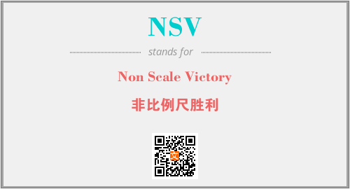上述内容是“Non Scale Victory”作为“NSV”的缩写,解释为“非比例尺胜利”时的信息,以及英文缩略词NSV所代表的英文单词,其对应的中文拼音、详细解释以及在英文中的流行度和相关分类、应用领域及应用示例等。