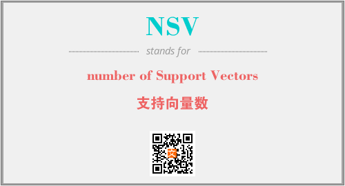上述内容是“number of Support Vectors”作为“NSV”的缩写,解释为“支持向量数”时的信息,以及英文缩略词NSV所代表的英文单词,其对应的中文拼音、详细解释以及在英文中的流行度和相关分类、应用领域及应用示例等。