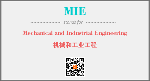 上述内容是“Mechanical and Industrial Engineering”作为“MIE”的缩写,解释为“机械和工业工程”时的信息,以及英文缩略词MIE所代表的英文单词,其对应的中文拼音、详细解释以及在英文中的流行度和相关分类、应用领域及应用示例等。