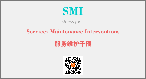 英文缩略词“SMI”经常作为“Services Maintenance Interventions”的英文缩写来使用,中文表示:“服务维护干预”。本文将详细介绍英文缩写词SMI所代表英文单词,其对应的中文拼音、详细解释以及在英语中的流行度。此外,还有关于缩略词SMI的分类、应用领域及相关应用示例等。