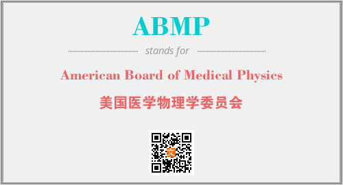 上述内容是“American Board of Medical Physics”作为“ABMP”的缩写,解释为“美国医学物理学委员会”时的信息,以及英文缩略词ABMP所代表的英文单词,其对应的中文拼音、详细解释以及在英文中的流行度和相关分类、应用领域及应用示例等。