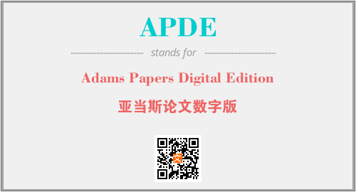 英文缩略词“APDE”经常作为“Adams Papers Digital Edition”的英文缩写来使用,中文表示:“亚当斯论文数字版”。本文将详细介绍英文缩写词APDE所代表英文单词,其对应的中文拼音、详细解释以及在英语中的流行度。此外,还有关于缩略词APDE的分类、应用领域及相关应用示例等。