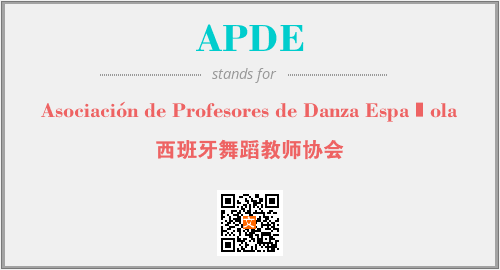 上述内容是“Asociación de Profesores de Danza Española”作为“APDE”的缩写,解释为“西班牙舞蹈教师协会”时的信息,以及英文缩略词APDE所代表的英文单词,其对应的中文拼音、详细解释以及在英文中的流行度和相关分类、应用领域及应用示例等。