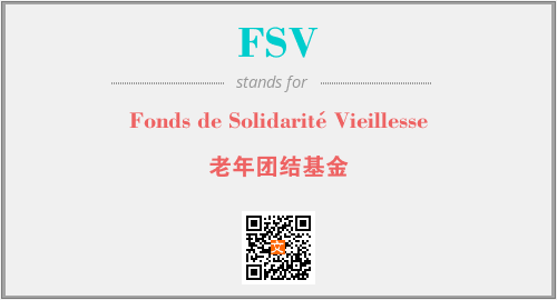上述内容是“Fonds de Solidarité Vieillesse”作为“FSV”的缩写,解释为“老年团结基金”时的信息,以及英文缩略词FSV所代表的英文单词,其对应的中文拼音、详细解释以及在英文中的流行度和相关分类、应用领域及应用示例等。