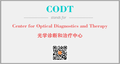 上述内容是“Center for Optical Diagnostics and Therapy”作为“CODT”的缩写,解释为“光学诊断和治疗中心”时的信息,以及英文缩略词CODT所代表的英文单词,其对应的中文拼音、详细解释以及在英文中的流行度和相关分类、应用领域及应用示例等。
