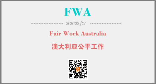 英文缩略词“FWA”经常作为“Fair Work Australia”的英文缩写来使用,中文表示:“澳大利亚公平工作”。本文将详细介绍英文缩写词FWA所代表英文单词,其对应的中文拼音、详细解释以及在英语中的流行度。此外,还有关于缩略词FWA的分类、应用领域及相关应用示例等。