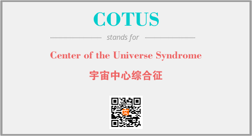 以上为Center of the Universe Syndrome英文缩略词COTUS的中文解释,以及该英文缩写在英语的流行度、分类和应用领域方面的信息。