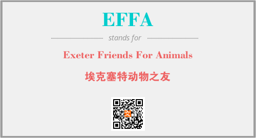 上述内容是“Exeter Friends For Animals”作为“EFFA”的缩写,解释为“埃克塞特动物之友”时的信息,以及英文缩略词EFFA所代表的英文单词,其对应的中文拼音、详细解释以及在英文中的流行度和相关分类、应用领域及应用示例等。
