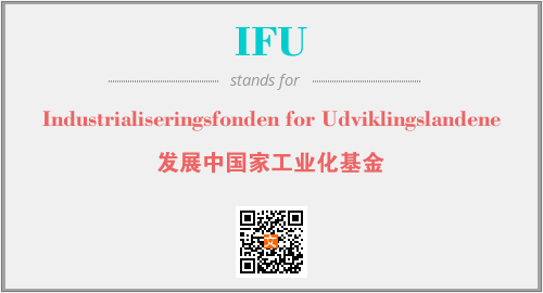 英文缩略词“IFU”经常作为“Industrialiseringsfonden for Udviklingslandene”的英文缩写来使用,中文表示:“发展中国家工业化基金”。本文将详细介绍英文缩写词IFU所代表英文单词,其对应的中文拼音、详细解释以及在英语中的流行度。此外,还有关于缩略词IFU的分类、应用领域及相关应用示例等。