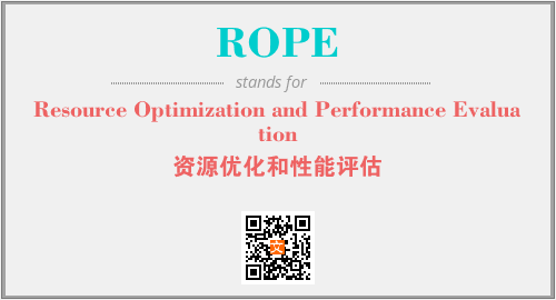 上述内容是“Resource Optimization and Performance Evaluation”作为“ROPE”的缩写,解释为“资源优化和性能评估”时的信息,以及英文缩略词ROPE所代表的英文单词,其对应的中文拼音、详细解释以及在英文中的流行度和相关分类、应用领域及应用示例等。