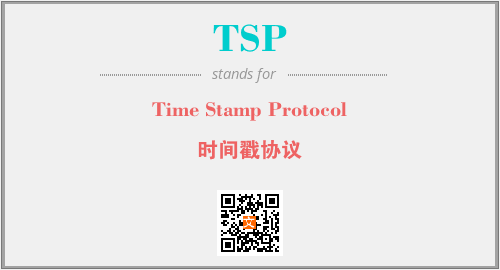 上述内容是“Time Stamp Protocol”作为“TSP”的缩写,解释为“时间戳协议”时的信息,以及英文缩略词TSP所代表的英文单词,其对应的中文拼音、详细解释以及在英文中的流行度和相关分类、应用领域及应用示例等。