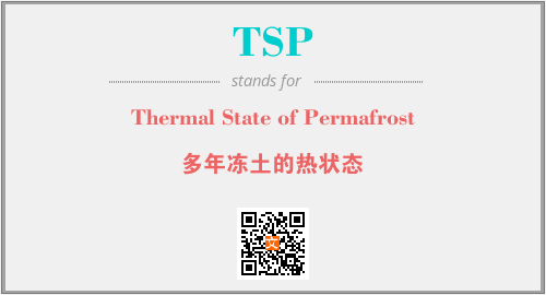 英文缩略词“TSP”经常作为“Thermal State of Permafrost”的英文缩写来使用,中文表示:“多年冻土的热状态”。本文将详细介绍英文缩写词TSP所代表英文单词,其对应的中文拼音、详细解释以及在英语中的流行度。此外,还有关于缩略词TSP的分类、应用领域及相关应用示例等。