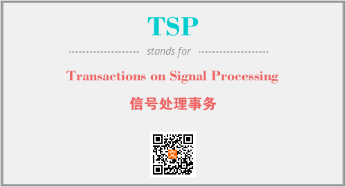 英文缩略词“TSP”经常作为“Transactions on Signal Processing”的英文缩写来使用,中文表示:“信号处理事务”。本文将详细介绍英文缩写词TSP所代表英文单词,其对应的中文拼音、详细解释以及在英语中的流行度。此外,还有关于缩略词TSP的分类、应用领域及相关应用示例等。