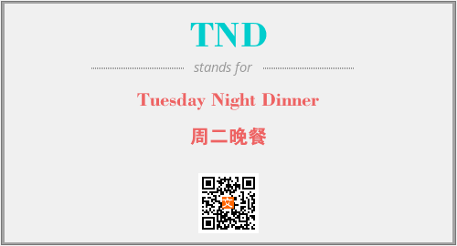 以上为Tuesday Night Dinner英文缩略词TND的中文解释,以及该英文缩写在英语的流行度、分类和应用领域方面的信息。