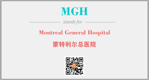 英文缩略词“MGH”经常作为“Montreal General Hospital”的英文缩写来使用,中文表示:“蒙特利尔总医院”。本文将详细介绍英文缩写词MGH所代表英文单词,其对应的中文拼音、详细解释以及在英语中的流行度。此外,还有关于缩略词MGH的分类、应用领域及相关应用示例等。