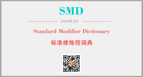 英文缩略词“SMD”经常作为“Standard Modifier Dictionary”的英文缩写来使用,中文表示:“标准修饰符词典”。本文将详细介绍英文缩写词SMD所代表英文单词,其对应的中文拼音、详细解释以及在英语中的流行度。此外,还有关于缩略词SMD的分类、应用领域及相关应用示例等。