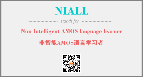 上述内容是“Non Intelligent AMOS language learner”作为“NIALL”的缩写,解释为“非智能AMOS语言学习者”时的信息,以及英文缩略词NIALL所代表的英文单词,其对应的中文拼音、详细解释以及在英文中的流行度和相关分类、应用领域及应用示例等。