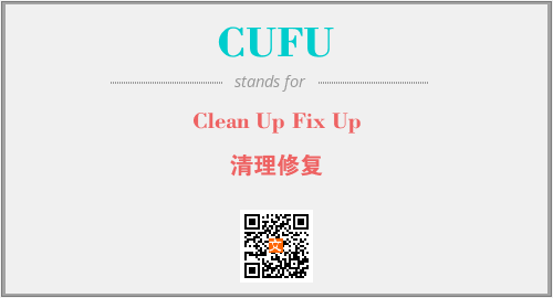 英文缩略词“CUFU”经常作为“Clean Up Fix Up”的英文缩写来使用,中文表示:“清理修复”。本文将详细介绍英文缩写词CUFU所代表英文单词,其对应的中文拼音、详细解释以及在英语中的流行度。此外,还有关于缩略词CUFU的分类、应用领域及相关应用示例等。
