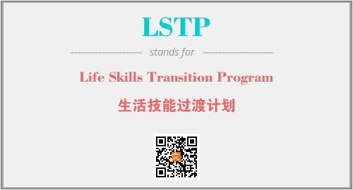 以上为Life Skills Transition Program英文缩略词LSTP的中文解释,以及该英文缩写在英语的流行度、分类和应用领域方面的信息。