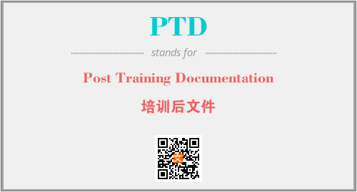 英文缩略词“PTD”经常作为“Post Training Documentation”的英文缩写来使用,中文表示:“培训后文件”。本文将详细介绍英文缩写词PTD所代表英文单词,其对应的中文拼音、详细解释以及在英语中的流行度。此外,还有关于缩略词PTD的分类、应用领域及相关应用示例等。