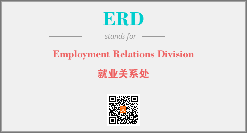 上述内容是“Employment Relations Division”作为“ERD”的缩写,解释为“就业关系处”时的信息,以及英文缩略词ERD所代表的英文单词,其对应的中文拼音、详细解释以及在英文中的流行度和相关分类、应用领域及应用示例等。
