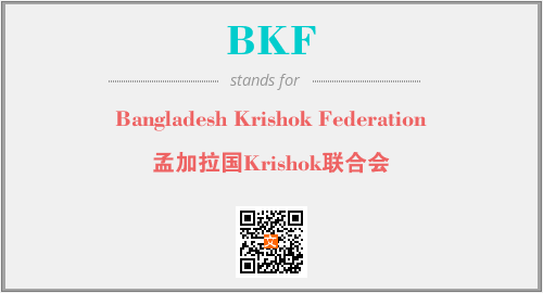 上述内容是“Bangladesh Krishok Federation”作为“BKF”的缩写,解释为“孟加拉国Krishok联合会”时的信息,以及英文缩略词BKF所代表的英文单词,其对应的中文拼音、详细解释以及在英文中的流行度和相关分类、应用领域及应用示例等。