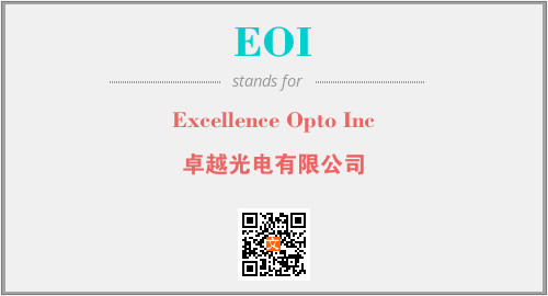 上述内容是“Excellence Opto Inc”作为“EOI”的缩写,解释为“卓越光电有限公司”时的信息,以及英文缩略词EOI所代表的英文单词,其对应的中文拼音、详细解释以及在英文中的流行度和相关分类、应用领域及应用示例等。