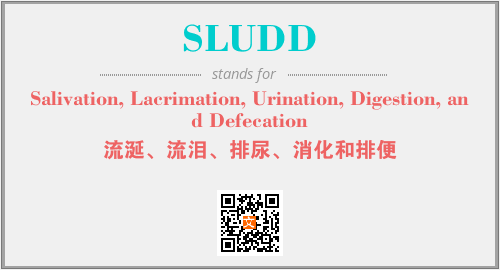 上述内容是“Salivation, Lacrimation, Urination, Digestion, and Defecation”作为“SLUDD”的缩写,解释为“流涎、流泪、排尿、消化和排便”时的信息,以及英文缩略词SLUDD所代表的英文单词,其对应的中文拼音、详细解释以及在英文中的流行度和相关分类、应用领域及应用示例等。