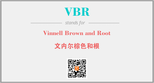 英文缩略词“VBR”经常作为“Vinnell Brown and Root”的英文缩写来使用,中文表示:“文内尔棕色和根”。本文将详细介绍英文缩写词VBR所代表英文单词,其对应的中文拼音、详细解释以及在英语中的流行度。此外,还有关于缩略词VBR的分类、应用领域及相关应用示例等。
