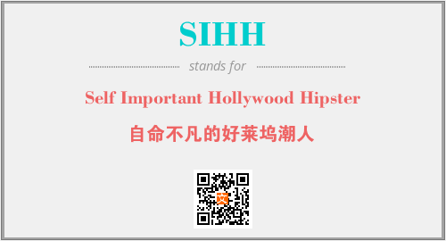 英文缩略词“SIHH”经常作为“Self Important Hollywood Hipster”的英文缩写来使用,中文表示:“自命不凡的好莱坞潮人”。本文将详细介绍英文缩写词SIHH所代表英文单词,其对应的中文拼音、详细解释以及在英语中的流行度。此外,还有关于缩略词SIHH的分类、应用领域及相关应用示例等。
