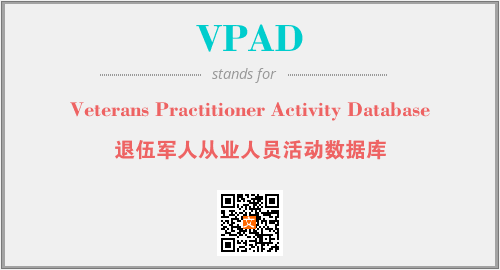 英文缩略词“VPAD”经常作为“Veterans Practitioner Activity Database”的英文缩写来使用,中文表示:“退伍军人从业人员活动数据库”。本文将详细介绍英文缩写词VPAD所代表英文单词,其对应的中文拼音、详细解释以及在英语中的流行度。此外,还有关于缩略词VPAD的分类、应用领域及相关应用示例等。