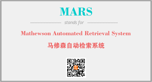 上述内容是“Mathewson Automated Retrieval System”作为“MARS”的缩写,解释为“马修森自动检索系统”时的信息,以及英文缩略词MARS所代表的英文单词,其对应的中文拼音、详细解释以及在英文中的流行度和相关分类、应用领域及应用示例等。