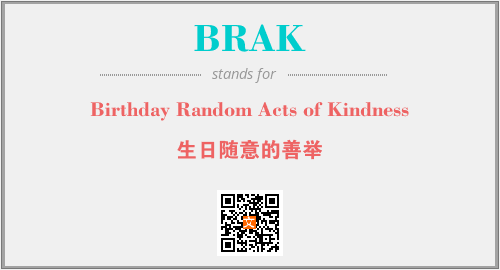 以上为Birthday Random Acts of Kindness英文缩略词BRAK的中文解释,以及该英文缩写在英语的流行度、分类和应用领域方面的信息。