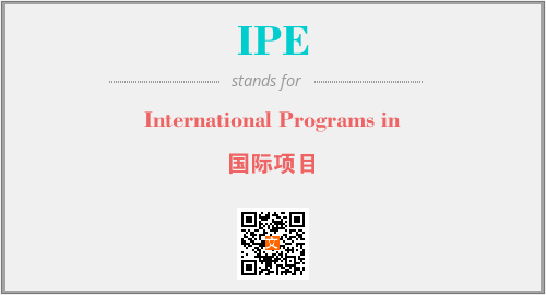 以上为International Programs in英文缩略词IPE的中文解释,以及该英文缩写在英语的流行度、分类和应用领域方面的信息。