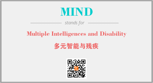 上述内容是“Multiple Intelligences and Disability”作为“MIND”的缩写,解释为“多元智能与残疾”时的信息,以及英文缩略词MIND所代表的英文单词,其对应的中文拼音、详细解释以及在英文中的流行度和相关分类、应用领域及应用示例等。