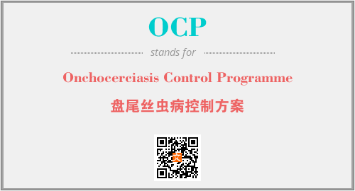 英文缩略词“OCP”经常作为“Onchocerciasis Control Programme”的英文缩写来使用,中文表示:“盘尾丝虫病控制方案”。本文将详细介绍英文缩写词OCP所代表英文单词,其对应的中文拼音、详细解释以及在英语中的流行度。此外,还有关于缩略词OCP的分类、应用领域及相关应用示例等。