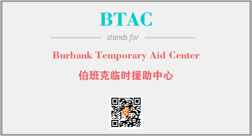 上述内容是“Burbank Temporary Aid Center”作为“BTAC”的缩写,解释为“伯班克临时援助中心”时的信息,以及英文缩略词BTAC所代表的英文单词,其对应的中文拼音、详细解释以及在英文中的流行度和相关分类、应用领域及应用示例等。