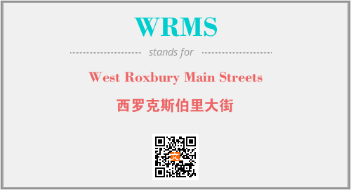 上述内容是“West Roxbury Main Streets”作为“WRMS”的缩写,解释为“西罗克斯伯里大街”时的信息,以及英文缩略词WRMS所代表的英文单词,其对应的中文拼音、详细解释以及在英文中的流行度和相关分类、应用领域及应用示例等。