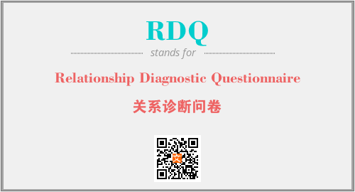 上述内容是“Relationship Diagnostic Questionnaire”作为“RDQ”的缩写,解释为“关系诊断问卷”时的信息,以及英文缩略词RDQ所代表的英文单词,其对应的中文拼音、详细解释以及在英文中的流行度和相关分类、应用领域及应用示例等。