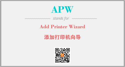上述内容是“Add Printer Wizard”作为“APW”的缩写,解释为“添加打印机向导”时的信息,以及英文缩略词APW所代表的英文单词,其对应的中文拼音、详细解释以及在英文中的流行度和相关分类、应用领域及应用示例等。